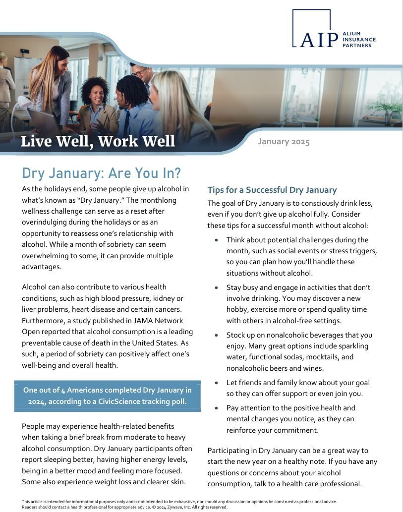Live Well Newsletter - Dry January Challenge